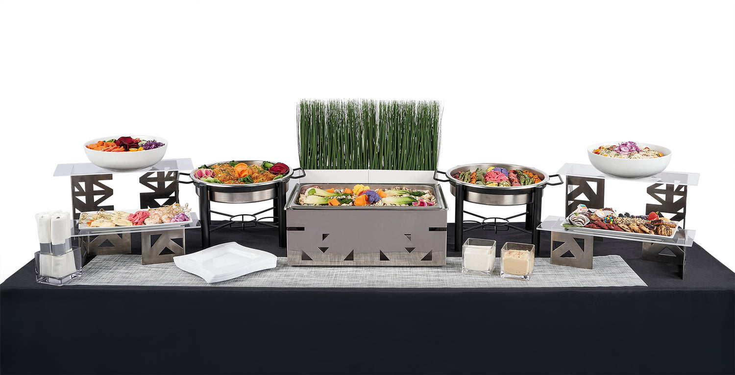 Packages include 1 protein, 2 sides, and dessert platter. Add Bread Basket and/or Salad